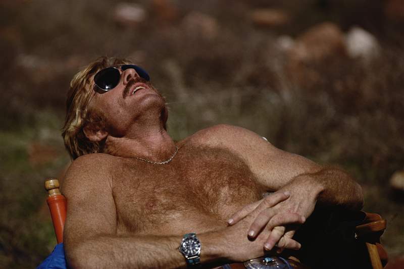 羅伯特·雷德福(ROBERT REDFORD),留著70年代的胡子和胸毛,帶著他標志性的紅色潛艇參考1680照片:GETTY/ERNST HAAS
