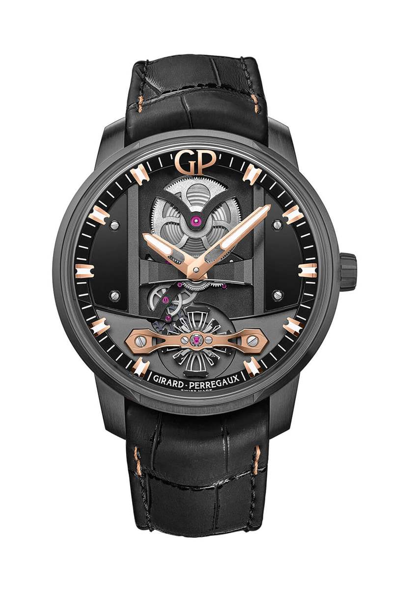 在 44 毫米不銹鋼表殼內是自動 GP01800-1170 機芯——當然,所有 GP 機芯都是制造的——它在整個擺輪中使用了大量的硅,并具有 54 小時的穩(wěn)定動力儲存。更有趣的是,整個事情都被涂黑了,以真正錘擊 GP 所追求的當代角度。
