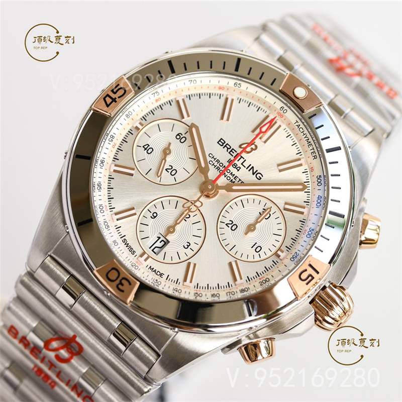 大家好,我是zslhs小編,gf廠是一家百年靈復(fù)刻表最出名的廠,旗下涵蓋了百年靈的所有款式,基本上能買到的頂級(jí)版本都是zf廠,最近gf廠也是全新復(fù)刻一款鋼王表,子彈鏈設(shè)計(jì),42mm的尺寸,7750計(jì)時(shí)機(jī)芯,百年靈當(dāng)中的機(jī)械計(jì)時(shí)系列,這款表做工十分出色,包括外觀設(shè)計(jì)方面依舊是百年靈經(jīng)典功能性設(shè)計(jì),更具年輕化,下面看看這款GF廠百年靈機(jī)械計(jì)時(shí)鋼王復(fù)刻表間金款做工怎么樣!