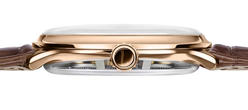 Central Impulse Chronometer 44 毫米寬表殼(防水深度達(dá) 30 米)的背面采用盒形藍(lán)寶石水晶鏡面。它提供了運(yùn)動(dòng)的美麗廣闊的視野。有兩個(gè)版本的表盤可供選擇——帶或不帶部分鏤空,以欣賞更多的動(dòng)畫機(jī)制。盡管表殼只有 12.2 毫米厚,??但由于透明底蓋和視覺(jué)上很薄的金屬外殼組件的存在,它在視覺(jué)上變得更薄。