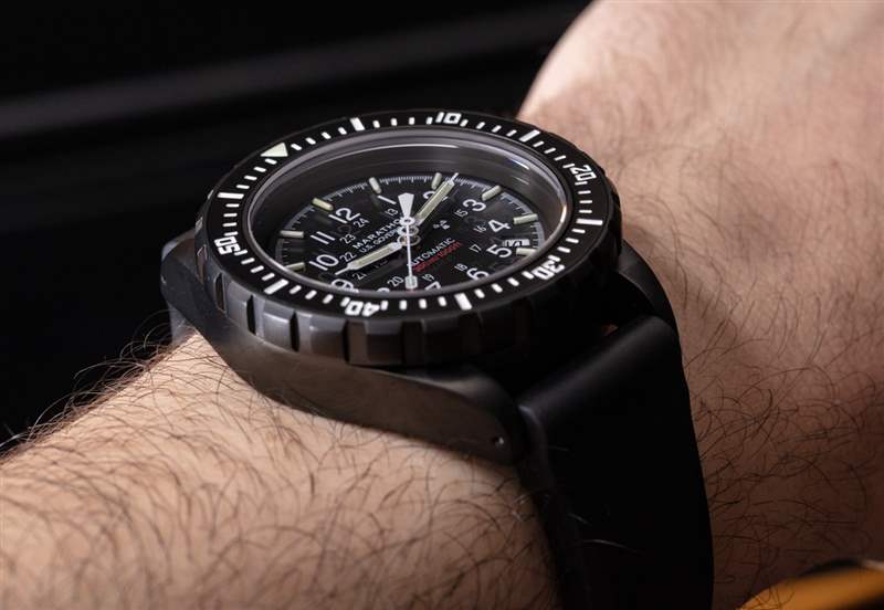 據(jù) Marathon 稱,為了獲得正確類型的持久黑色涂層應(yīng)用,他們需要進行多輪實驗。在描述如何實現(xiàn)符合 Marathon 高標(biāo)準(zhǔn)的黑色應(yīng)用時,“屁股疼”了好幾次。出于這個原因,目前還沒有與之匹配的黑色涂層鋼表鏈,但我相信它可能會出現(xiàn)。這將使 GSAR Knight Rider 看起來更具吸引力。