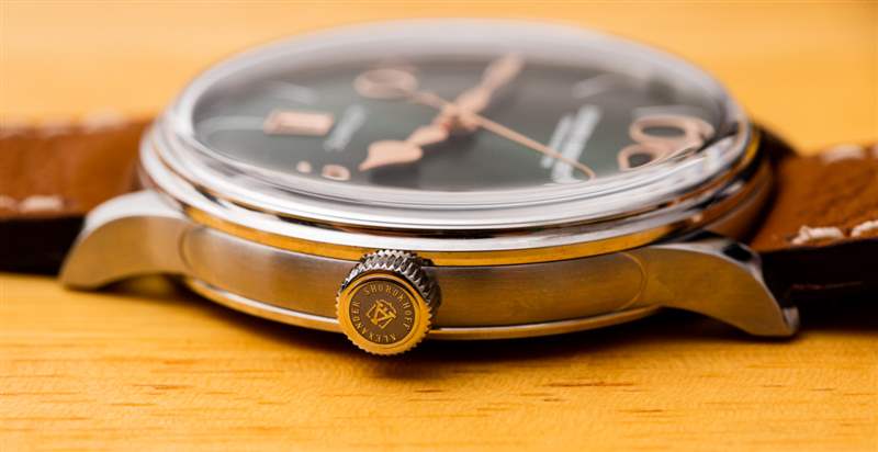 當(dāng)然,40 毫米寬的鋼制表殼確實有一個擋板,但它在表殼的下方。仔細檢查拋光和拉絲表殼會發(fā)現(xiàn)精心制作的設(shè)計,在我看來,這有助于將這種休閑禮服手表與其他許多具有相對通用表殼設(shè)計的手表區(qū)分開來。Alexander Shorokhoff 談到表殼有多“扁平”——但實際上,它并不是 11.3 毫米的超薄。然而,這并不能使它成為一款特別厚的手表——對我來說,對于 40 毫米寬的休閑正裝手表來說,這是一個非常好的“恰到好處”的厚度。該表殼還可以防水 50 米(對于沒有旋入式表冠的這種更精致的手表是可以接受的)。