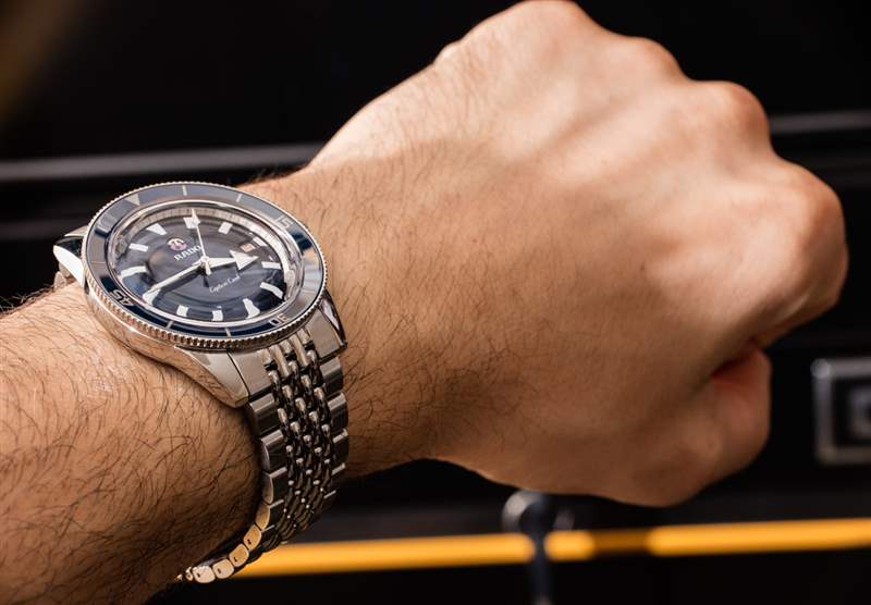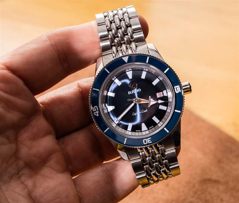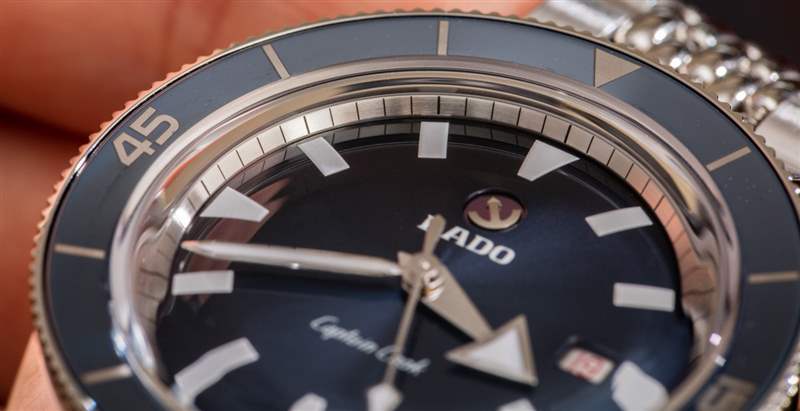 對于一些更現(xiàn)代的 Rado 手表,我不得不接受的一件事是,它們不再總是采用像陶瓷和其他異國情調(diào)的材料那樣的現(xiàn)代材料作為表殼的一部分。庫克船長自動腕表確實(shí)有一個(gè)藍(lán)色陶瓷表圈插件,但表殼本身是不銹鋼的。這并沒有錯(cuò),但消費(fèi)者(至少在北美)習(xí)慣于 Rado 的一切都是關(guān)于超耐刮擦金屬外觀的陶瓷材料,在考慮這樣的時(shí)計(jì)時(shí),他們將不得不重新審視 Rado 的價(jià)值觀。