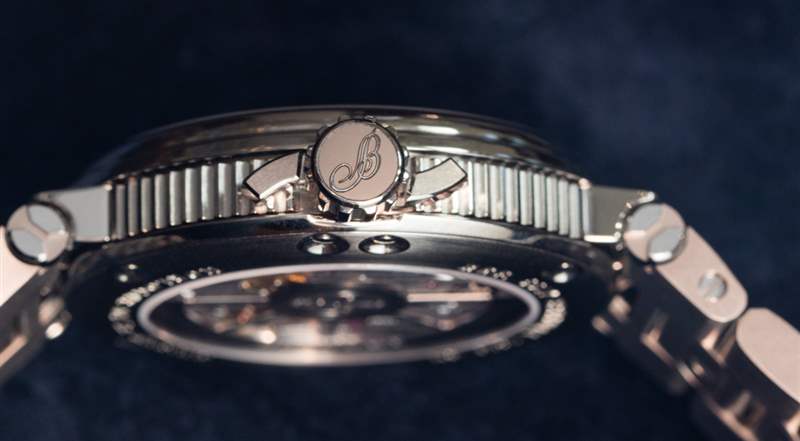 手鏈本身采用簡單的三連桿設(shè)計,但充滿了受歡迎的細(xì)節(jié)。查看手鐲的側(cè)面,注意大多數(shù)鏈節(jié)沒有螺絲孔。相反,寶璣開發(fā)了一種系統(tǒng),該系統(tǒng)使用位于表鏈內(nèi)側(cè)的螺釘為鏈節(jié)提供固定機(jī)制。另請注意折疊展開式表扣。它可能看起來很標(biāo)準(zhǔn),但寶璣開發(fā)了一種全新的展開器,帶有優(yōu)雅的按鈕,看起來和操作起來都非常好。在我看來,手鐲中缺少的只是一個微調(diào)系統(tǒng)(盡管我不確定是否有必要)。