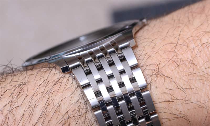 佩戴 Eco-Drive One 是一種獨(dú)特的體驗(yàn)——既積極向上,有時(shí)也令人不安。我說(shuō)后者是因?yàn)榧词鼓愦髦直?,它也很薄,很容易忘記你戴著手表。忘記相?duì)較輕的舒適的,主要是鋼表殼和表鏈,想想一直戴著一塊更普通尺寸的手表是什么感覺,然后看著你的手腕,感覺那里沒有表殼!至少 Eco-Drive One 是這樣的。它只是感覺太薄了,你的大腦甚至沒有將這種情況記錄下來(lái)。