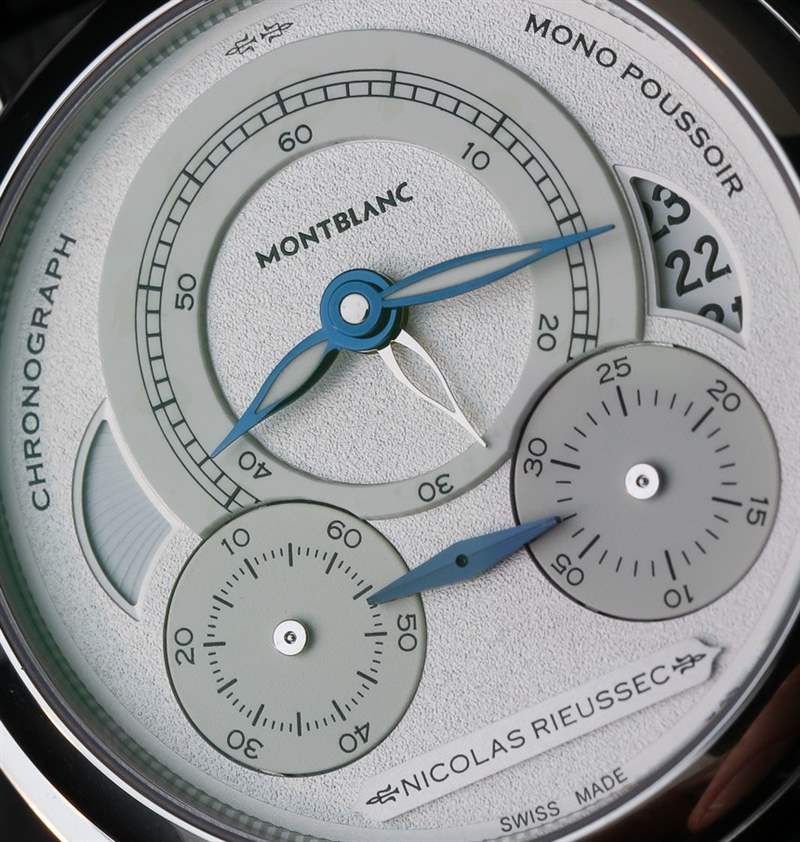 請(qǐng)注意,萬(wàn)寶龍向尼古拉斯·凱世 (Nicolas Rieussec) 致敬的版本的計(jì)時(shí)碼表讀數(shù)略有調(diào)整。從一開(kāi)始,萬(wàn)寶龍 Nicolas Rieussec 手表就采用圓盤與指針來(lái)指示計(jì)時(shí)讀數(shù)。一切都沒(méi)有改變,但你閱讀信息的地方已經(jīng)移到了一邊,沿著雙倍大小的藍(lán)鋼指針。