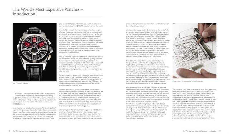 當(dāng)然,《世界上最昂貴的手表》一書并不包括所有價(jià)格超過 200,000 美元的手表。從邏輯上講,我需要精心挑選過去 15 年左右的重要模型。收錄的鐘表大多是全新的,都是男士腕表,但也包括一些當(dāng)時(shí)在拍賣會(huì)上出售的著名古董鐘表。總而言之,《世界上最昂貴的手表》旨在捕捉世界上最有價(jià)值的時(shí)計(jì)在我們現(xiàn)代所體現(xiàn)的精髓。