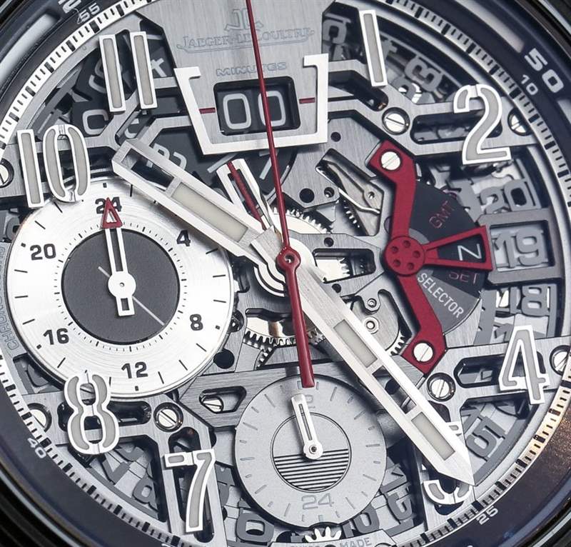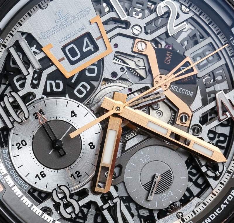 那么那塊積家至尊實(shí)驗(yàn)室2到底有什么功能呢?很難看到的一件很酷的事情是,您可以在計(jì)時(shí)碼表運(yùn)行時(shí)調(diào)整時(shí)間——這非???。計(jì)時(shí)復(fù)雜功能使用精美的垂直離合器和導(dǎo)柱輪,并通過(guò)大日期式數(shù)字計(jì)數(shù)器指示經(jīng)過(guò)的分鐘數(shù)。這太酷了,它讓計(jì)時(shí)碼表的使用變得非常有趣,視覺上也令人印象深刻。Jaeger-LeCoultre 積家設(shè)計(jì)的 Jaeger-LeCoultre Extreme Lab 2 計(jì)時(shí)碼表最多可計(jì)時(shí) 24 小時(shí),而大多數(shù)完整計(jì)時(shí)碼表更常見的是 12 小時(shí)??拷?9 點(diǎn)鐘位置的計(jì)時(shí)小時(shí)計(jì)數(shù)器中的圓盤用作時(shí)間的秒針指示器。