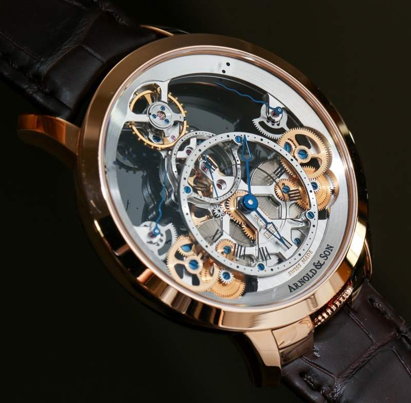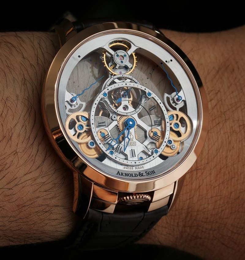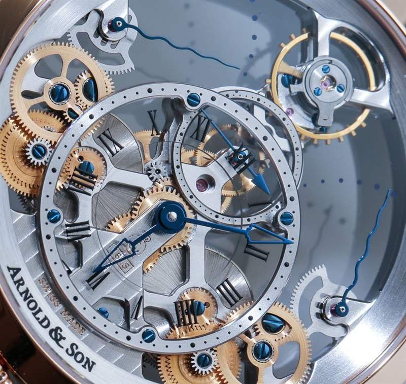 也許這就是我想從人們那里得到的——讓他們?cè)儐?wèn)我手腕上的亞諾表時(shí)間金字塔,這樣我就可以向他們傳授鐘表學(xué)知識(shí),并向他們展示這款機(jī)芯的工作原理。盡管 Arnold & Son Time Pyramid 并不是一款完全基本的機(jī)芯,但人們可以很容易地從位于藍(lán)寶石三明治之間的經(jīng)過(guò)藝術(shù)設(shè)計(jì)的鏤空機(jī)芯中看出機(jī)械表的基本工作原理。
