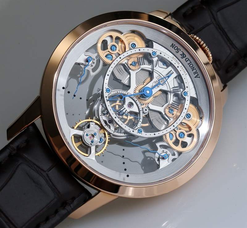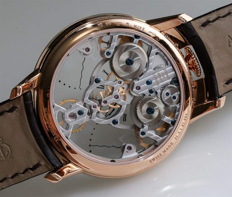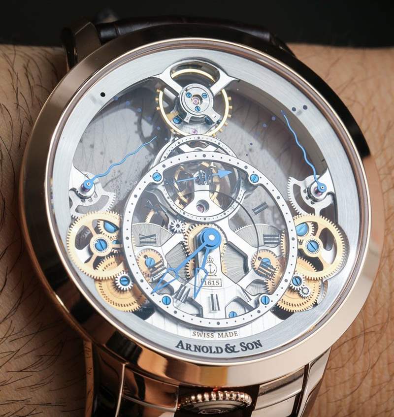 從各個(gè)角度看,A&S1615 機(jī)芯混合了銀色、黃銅和藍(lán)鋼色調(diào),令人賞心悅目。它也很薄,只有 4.4 毫米厚。Arnold & Son Time Pyramid 以 21,600 bph 的速度運(yùn)行,動(dòng)力儲(chǔ)存為 90 小時(shí)。正如你們大多數(shù)人所知,我對(duì)許多手動(dòng)上弦手表的問(wèn)題是缺乏動(dòng)力儲(chǔ)備。這在這里不是問(wèn)題,正如許多人已經(jīng)知道的那樣,Arnold & Son 時(shí)間金字塔有兩個(gè),如面部?jī)蓚?cè)的蛇形指針?biāo)尽?/p>