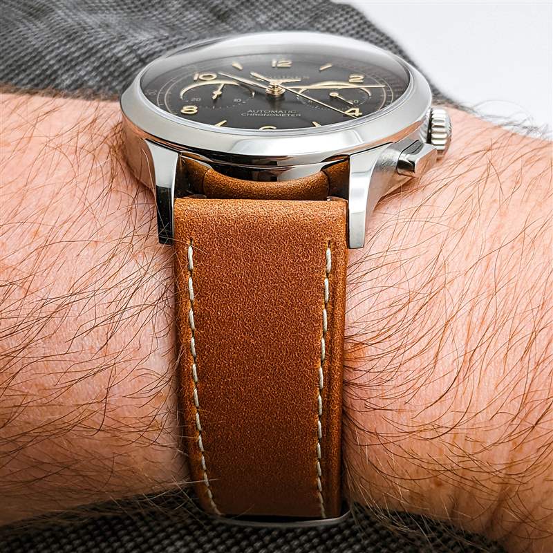 浪琴 (Longines) 將 Record Heritage 與兩種表帶搭配。第一個(gè)是復(fù)雜的多鏈節(jié)不銹鋼表鏈,但我們的評(píng)測(cè)樣品是在馬鞍棕色皮革表帶上送達(dá)的。從表面上看,這是一款經(jīng)典且用途廣泛的選擇,具有均勻的啞光質(zhì)地和干凈的灰白色對(duì)比色縫線。在實(shí)踐中,雖然它的外觀簡(jiǎn)單且用途廣泛,但表帶顯然很硬,可能需要長(zhǎng)時(shí)間的磨合才能完全貼合手腕而不會(huì)感到不適和擠壓。也就是說(shuō),浪琴表 Record Heritage 簡(jiǎn)潔、經(jīng)典的整體外觀應(yīng)該可以搭配各種表帶,打造更加定制的感覺。廣告留言廣告信息結(jié)束