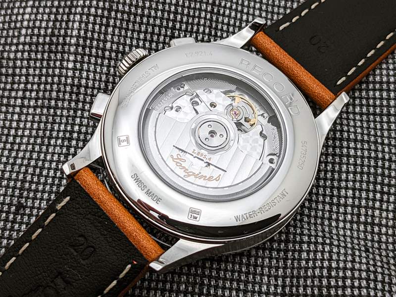 浪琴表以獨(dú)家 L895.4 自動(dòng)計(jì)時(shí)碼表機(jī)芯為 Record Heritage 提供動(dòng)力。盡管 L895.4 機(jī)芯最終基于 ETA 2892-A2 平臺(tái),但 L895.4 是 ETA 憑借其 Swatch Group 關(guān)系僅為浪琴表生產(chǎn)的新修改版本。L895.4 的表面處理與同價(jià)位的其他產(chǎn)品相比毫不遜色,橋板和擺輪夾板上的波紋清晰、緊密,還有帶有日內(nèi)瓦波紋的漂亮簽名鏤空擺陀。此外,L895.4 是一款真正的 COSC 認(rèn)證天文臺(tái)表,在我們的評(píng)測(cè)期間,該表在這一嚴(yán)格標(biāo)準(zhǔn)內(nèi)以平均每天 +5 秒的速度運(yùn)行。令人印象深刻的 59 小時(shí)動(dòng)力儲(chǔ)存以 28,800 bph 的節(jié)拍率完成包裝。