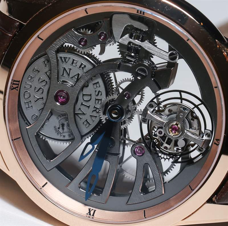 對(duì)于雅典表來說,這款腕表是首創(chuàng)。當(dāng)然不是他們的第一個(gè)自制機(jī)芯,也不是他們的第一個(gè)陀飛輪,而是他們的第一個(gè)自制鏤空陀飛輪。該機(jī)芯從頭開始設(shè)計(jì)為鏤空設(shè)計(jì)——這意味著雅典表不只是將現(xiàn)有機(jī)芯鏤空。新機(jī)芯為 UN-170 機(jī)芯,動(dòng)力儲(chǔ)存高達(dá) 170 小時(shí)。不幸的是沒有動(dòng)力儲(chǔ)存指示器,但那是很長(zhǎng)的時(shí)間。因此,有了大約一周的動(dòng)力儲(chǔ)存,您只需記得每個(gè)星期天晚上為您的 Skeleton Tourbillon Manufacture 手表上鏈。事實(shí)上,雅典表在這方面做得很巧妙。發(fā)條盒上刻有“170 小時(shí)動(dòng)力儲(chǔ)存”字樣。這很重要,因?yàn)樗梢宰屇S時(shí)回憶手表的電量。大多數(shù)人在拿到手表時(shí)要么忘記,要么永遠(yuǎn)不會(huì)被告知?jiǎng)恿?chǔ)存長(zhǎng)度。因此,Ulysse Nardin 確保多年后您會(huì)記得這個(gè)事實(shí)。