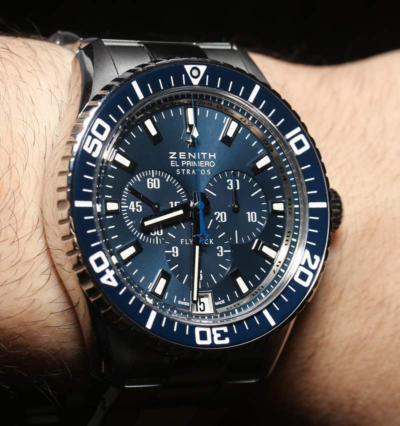2013 年,真力時(shí)沿著藍(lán)色之路發(fā)布了已經(jīng)廣受好評(píng)的 El Primero Stratos Flyback 腕表的藍(lán)色表盤(pán)版本。我們?cè)?2011 年首次推出 Zenith Stratos 手表時(shí)首次亮相。2013 年出現(xiàn)了很多藍(lán)色手表,我個(gè)人對(duì)此沒(méi)有任何問(wèn)題,因?yàn)槠恋乃{(lán)色運(yùn)動(dòng)手表看起來(lái)很棒。這不正是我們這里所擁有的嗎?藍(lán)色表盤(pán)上的藍(lán)色表圈搭配白色而不是一絲紅色,營(yíng)造出輕盈的 Stratos 外觀,看起來(lái)為天空做好了準(zhǔn)備。
