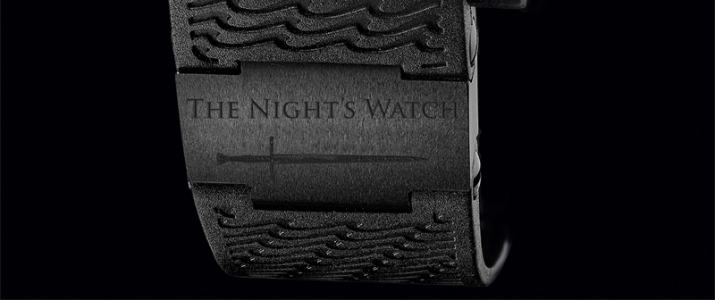 附在手表上的是一條帶有兩個陶瓷鏈節(jié)的橡膠表帶。這就是守夜人元素的用武之地。其中一個鏈節(jié)上,雅典表用劍雕刻了“守夜人”標志,而另一個鏈節(jié)上則刻有“我是黑暗中的劍”的守夜人座右銘被刻上。目前尚不清楚手表背面是否有任何權力的游戲品牌。瑞士自動機芯的功能包括時間、小秒針、日期和動力儲存指示器。