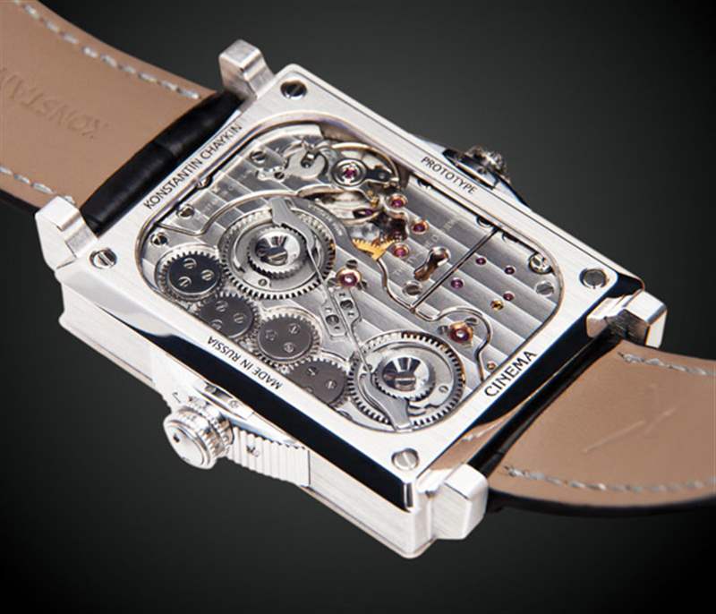 Cinema 手表最美妙的地方可能是它的設(shè)計(jì)類似于老式電影攝影機(jī)和放映機(jī)??邓固苟 げ榻?(Konstantin Chaykin) 用一系列帶齒邊緣的方形外殼將拋光金屬與黑色表面混合在一起,通過各種旋鈕、調(diào)節(jié)器和防滑表面重現(xiàn)復(fù)古相機(jī)的感覺。忠實(shí)于概念,Cinema 表殼采用鋼質(zhì)、琺瑯和黃銅材質(zhì)。表殼寬 37 毫米,高 47 毫米,厚度僅為 12.2 毫米。廣告留言廣告信息結(jié)束