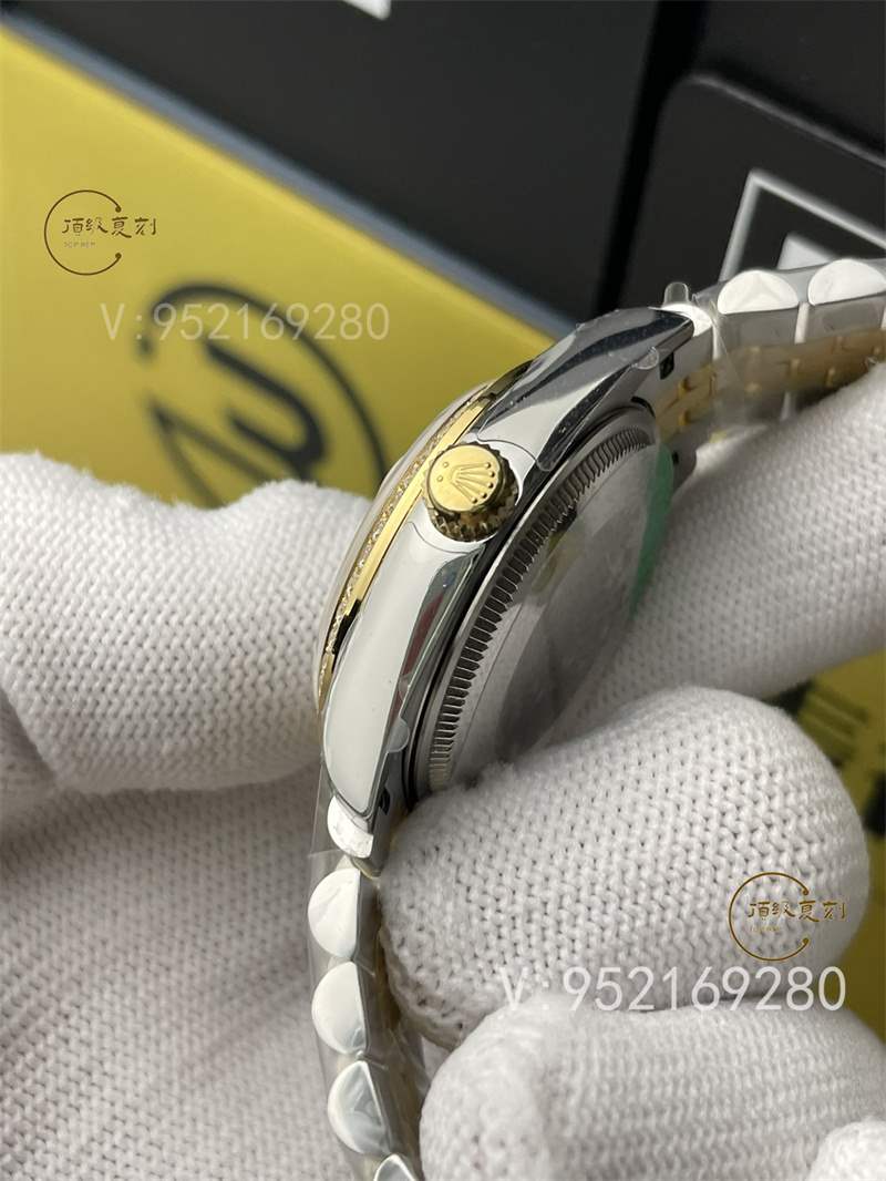 GS廠勞力士日志型31mm女表,厚度與原裝一致,數(shù)據(jù)與正品相符。經(jīng)典蠔式表殼搭配三角形坑紋表圈,表鏡采用防刮藍(lán)寶石水晶玻璃,防反光凸面放大日歷窗。從表殼的做工就足以看出gs的認(rèn)真和執(zhí)著,不管是正面還是背面都沒有區(qū)別,因?yàn)檫@是gs廠真正買正品開模生產(chǎn)的,最經(jīng)典的勞力士放大鏡,放大倍數(shù)、厚度、圓角處理,甚至是玻璃的光學(xué)性能,gs廠都大大還原了原版的數(shù)據(jù)。表頭整體外觀與正品無明顯區(qū)別,小表身的弧度和金屬質(zhì)感還原得栩栩如生。表耳的小孔也進(jìn)行了倒角處理。表頭厚度數(shù)據(jù)與正品一致。