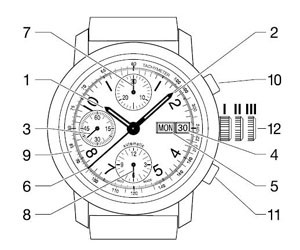 計(jì)時(shí)碼表(Chronograph)是一個(gè)專業(yè)名稱,其中的chrono在古英語(yǔ)和拉丁語(yǔ)中是“時(shí)間 ”的意思,而graph在英文中表示“記錄工具”。一般的表,連續(xù)地指示時(shí)間的消逝。計(jì)時(shí)表則有所不同,它可以隨意記 錄任何一段時(shí)間的長(zhǎng)短。標(biāo)準(zhǔn)計(jì)時(shí)表有30分鐘或12小時(shí)的計(jì)時(shí)功能。表面中央的秒針,平時(shí)停在零點(diǎn)的位置。為了顯示時(shí) 計(jì)在行走中,大多加設(shè)一個(gè)恒動(dòng)小秒針。計(jì)時(shí)表分兩種,第一種只有一個(gè)測(cè)量對(duì)象的普通計(jì)時(shí)表,另一種是有兩個(gè)測(cè)量對(duì)象的雙秒針?lè)侄斡?jì)時(shí)表。