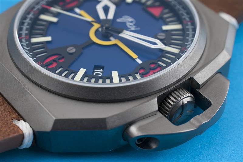 一旦你系上安全帶,盡管表盤上有很多東西,但態(tài)度上的時間還是很容易讀取的。大骨架的手很容易區(qū)分,我發(fā)現(xiàn)黑色的中心讓它們看起來很干凈。黃色地平線指示器還可以讓您在觀看手表時輕松快速確定方向。
