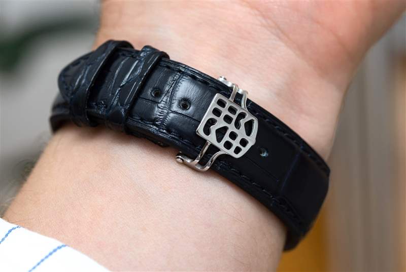 戴在手腕上,自制經(jīng)典陀飛輪腕表給人一種真正優(yōu)雅的感覺,專為日常佩戴而設(shè)計——也就是說,在辦公室里日常佩戴。這不是“看看這個!”?陀飛輪的展示只是為了將其置于敲詐比特幣百萬富翁沖動購買者的范圍內(nèi)。這是一款相對低調(diào)、內(nèi)斂的手表,看起來復(fù)雜而昂貴,但絕不令人討厭或礙眼。人們很容易想象跨國公司的高級經(jīng)理或工程師會穿著它。簡潔的細(xì)節(jié)包括,單個生產(chǎn)編號不僅可以在底蓋上讀取,還可以在陀飛輪框架的頂部讀取——功能性機(jī)芯組件具有如此程度的定制是很少見的。擒縱輪上刻有康斯登標(biāo)志,閃爍著紫色和藍(lán)色的光芒,這是因為它是由硅制成的。該品牌使用的不僅僅是這個組件 – 了解他們的 40Hz(是的,四十赫茲)這里采用硅制成的整體式擒縱機(jī)構(gòu)。折疊扣上還帶有品牌標(biāo)志,這是一個不錯的主意,盡管執(zhí)行起來并不像某些人想象的那么清晰。