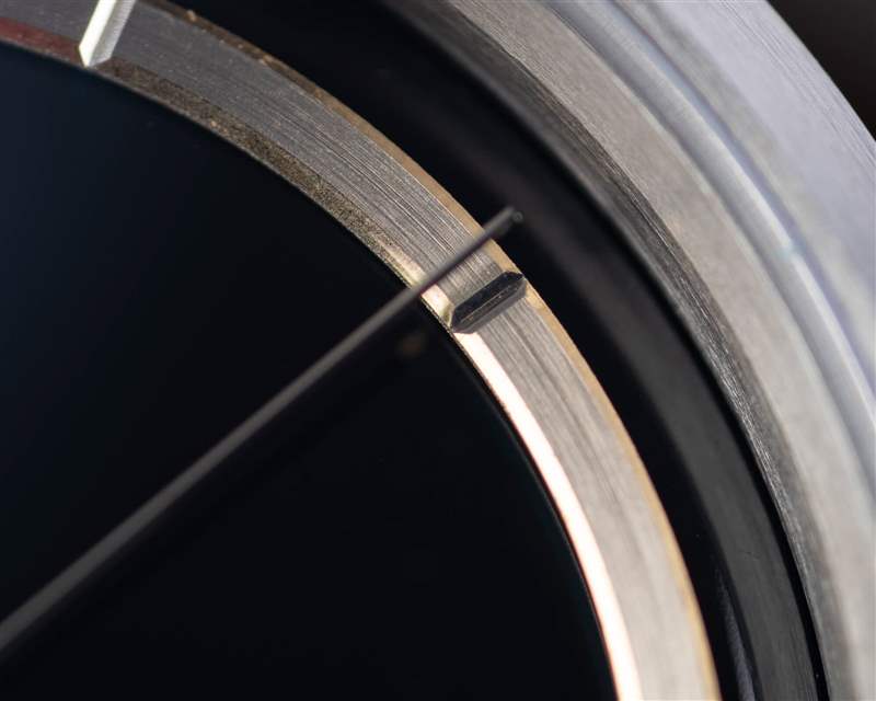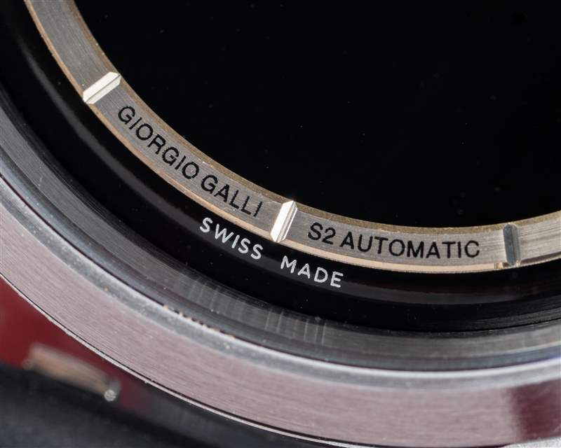 方尖碑手機(jī)經(jīng)過高度拋光和倒角處理,使其具有 S1 所缺乏的深度,但在某些角度,它可能會(huì)在黑色的襯托下消失。如果沒有任何流明,它在弱光下就沒有機(jī)會(huì)。(我仍然會(huì)選擇沒有夜光的手表,而不是像 S1 這樣夜光較差的手表。)但整個(gè)手表最顯著的美學(xué)變化是鋼制小時(shí)環(huán),它具有拉絲表面和用于標(biāo)記小時(shí)的凹口,喬治·加利 (Giorgio Galli) 和型號(hào)名稱位于六位,位于表盤上“瑞士制造”的上方。它具有金色光澤,盡管該品牌在任何地方都沒有這樣描述它,所以我不能說它上面是否有涂層。