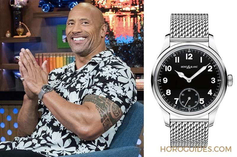 巨石強(qiáng)森也不是只戴運動表,例如2018年他上美國著名脫口秀節(jié)目“Watch What Happens Live with Andy Cohen”宣傳新電影《Skyscraper》(摩天大樓/高兇浩劫)時,就戴了一只萬寶龍MONTBLANC的1858小三針,黑色表盤搭配教堂式指針、大型洋蔥表冠與米蘭鏈帶,十足古典風(fēng)格,44mm的尺寸是源自Minerva古董懷表的大表徑,但之于巨石強(qiáng)森簡直就是一只袖珍的日常表。