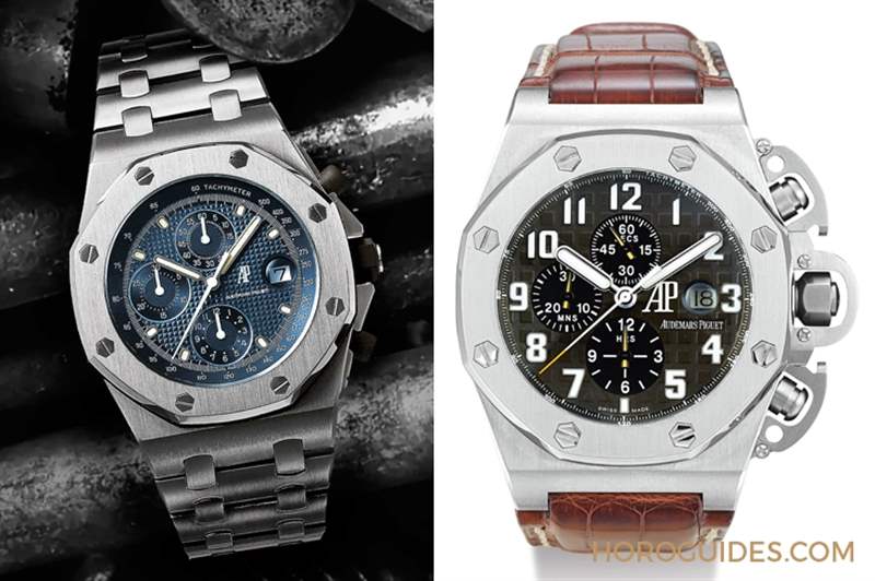 愛(ài)彼特別針對(duì)這兩只表款的logo設(shè)計(jì)加以更新,以「AP」取代「Audemars Piguet」,并配置于三點(diǎn)鐘位置。這項(xiàng)細(xì)部設(shè)計(jì),與上述三只鏈帶款同時(shí)采用「AP」與「Audemars Piguet」logo的設(shè)計(jì),截然不同,更加突顯運(yùn)動(dòng)感。